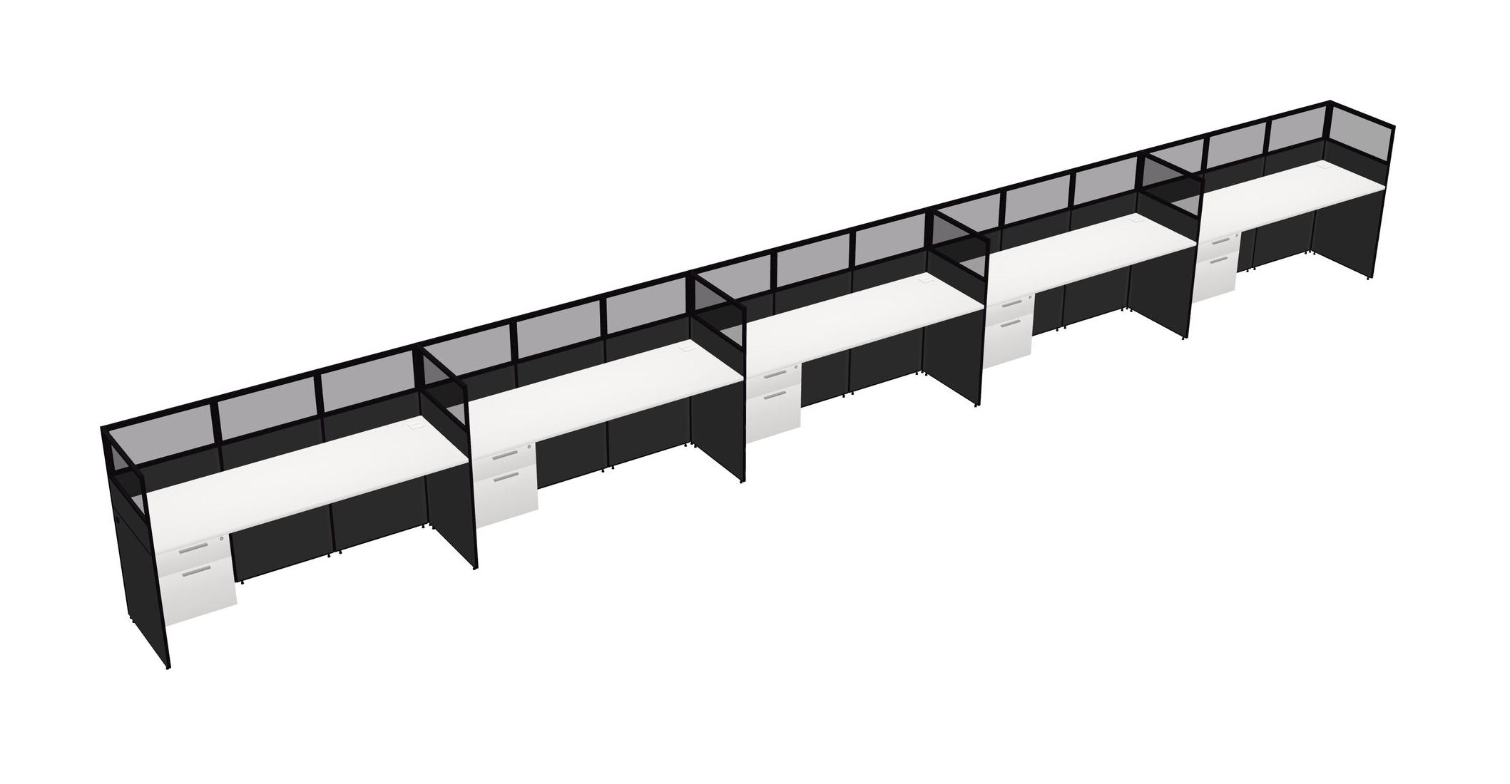 White Shared Rectangular Office Cubicle Panel System With Hanging Drawers For 5 Persons