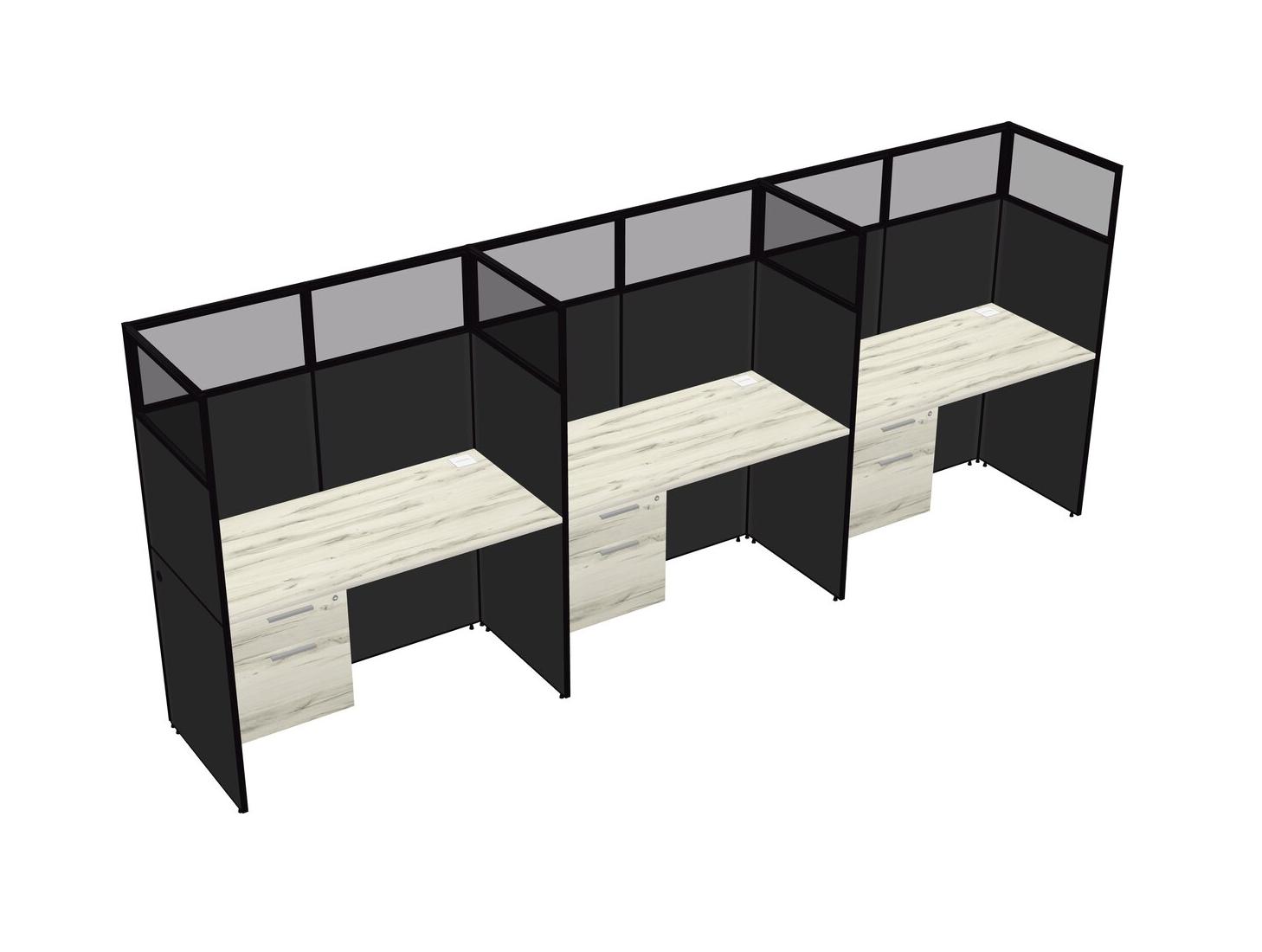Heinne Holz Shared Rectangular Office Cubicle Panel System With Hanging Drawers For 3 Persons