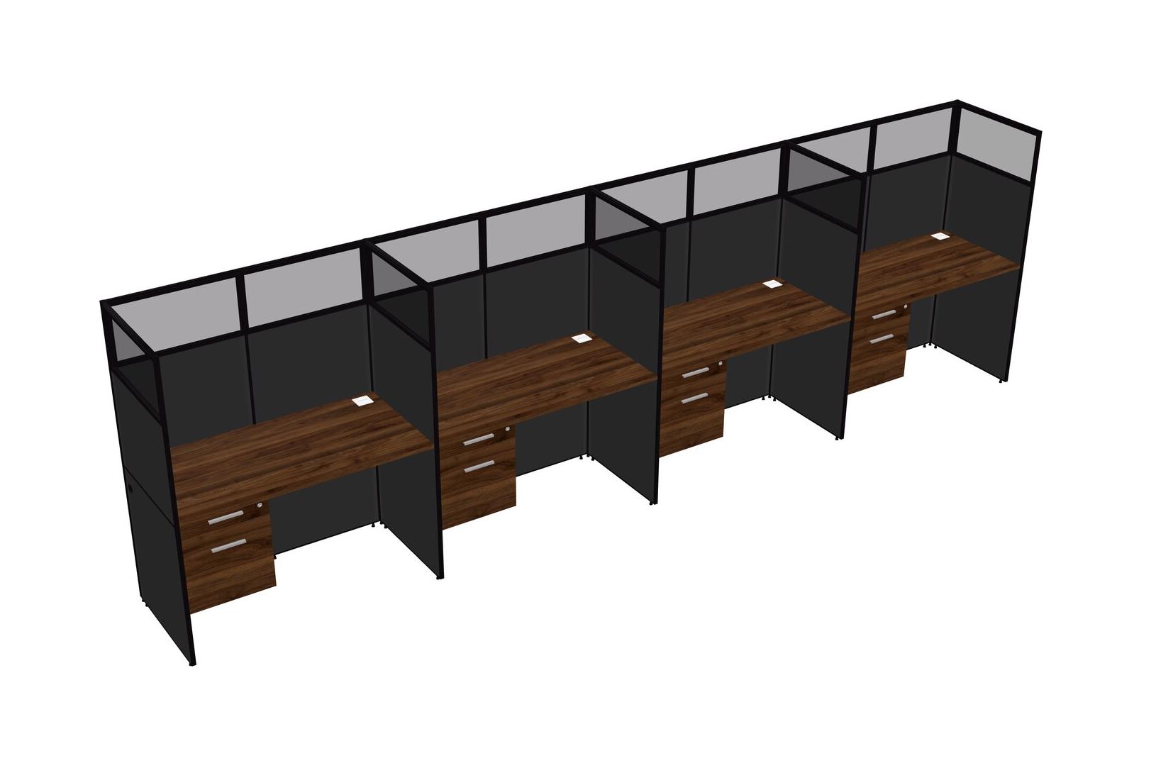 Columbia Walnut Shared Rectangular Office Cubicle Panel System With Hanging Drawers For 4 Persons