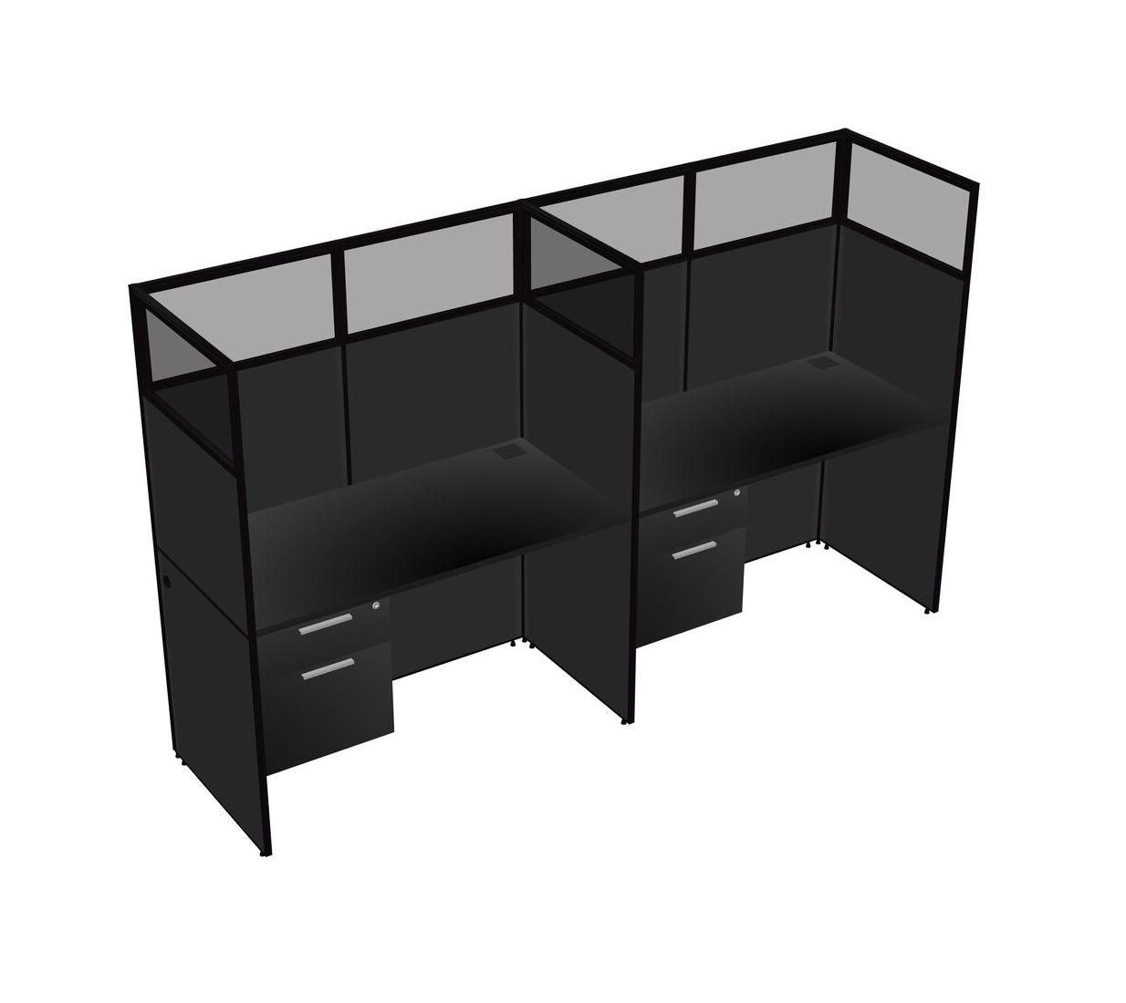Black Shared Rectangular Office Cubicle Panel System With Hanging Drawers For 2 Persons