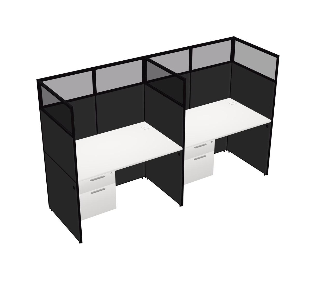 White Shared Rectangular Office Cubicle Panel System With Hanging Drawers For 2 Persons