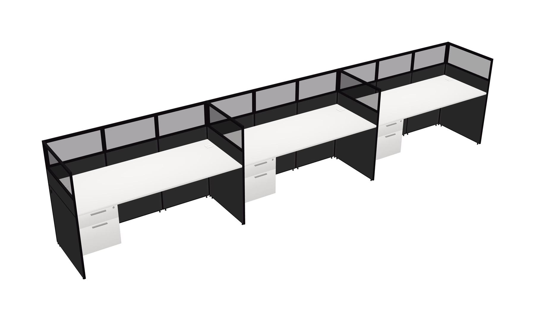 White Shared Rectangular Office Cubicle Panel System With Hanging Drawers For 3 Persons
