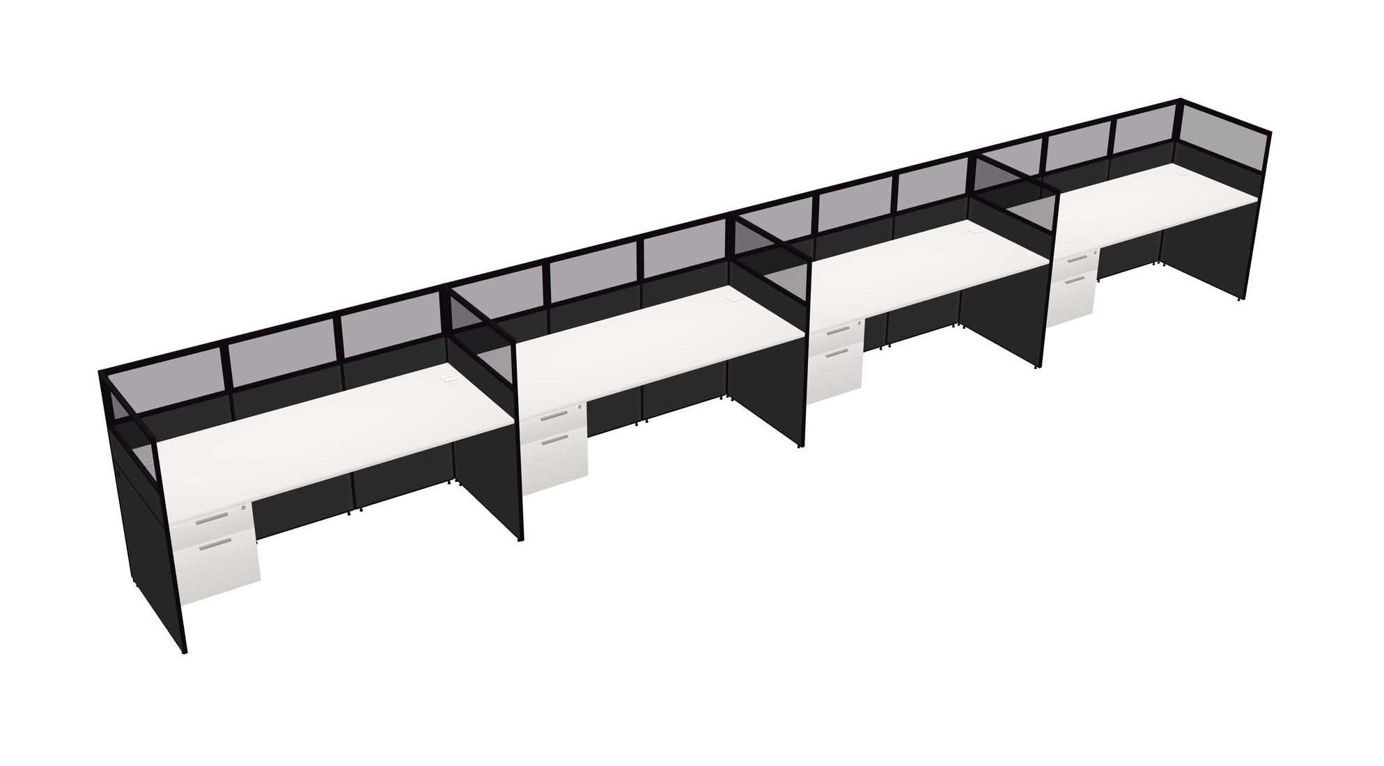 White Shared Rectangular Office Cubicle Panel System With Hanging Drawers For 4 Persons