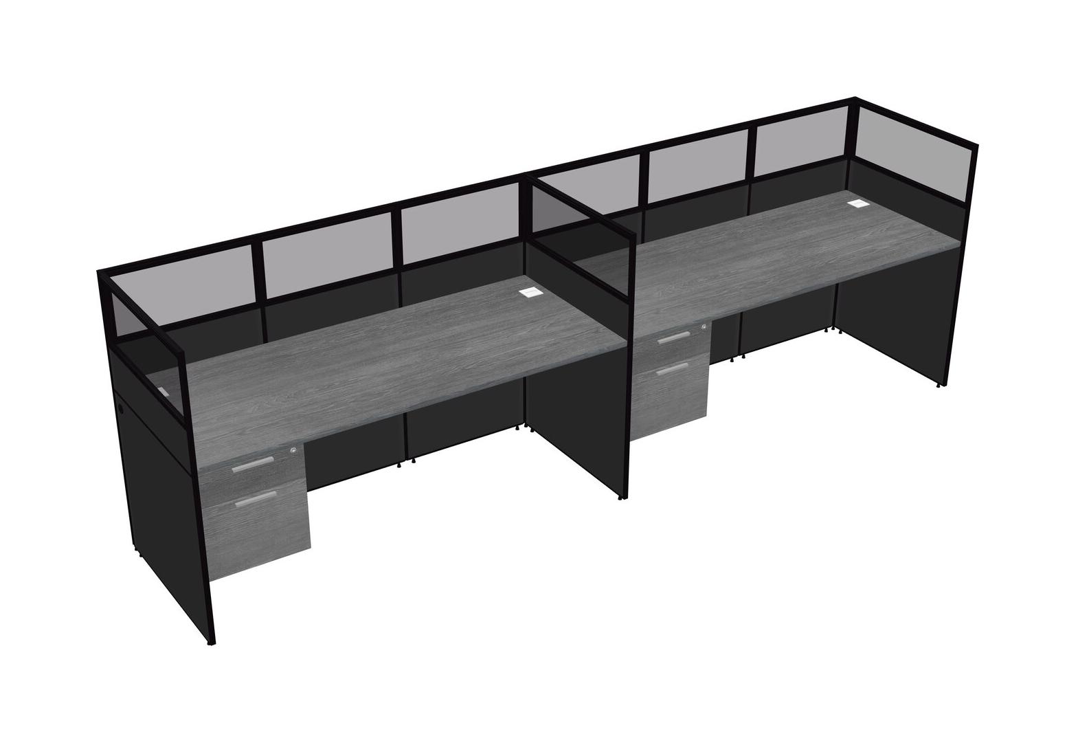 Grey Shared Rectangular Office Cubicle Panel System With Hanging Drawers For 2 Persons