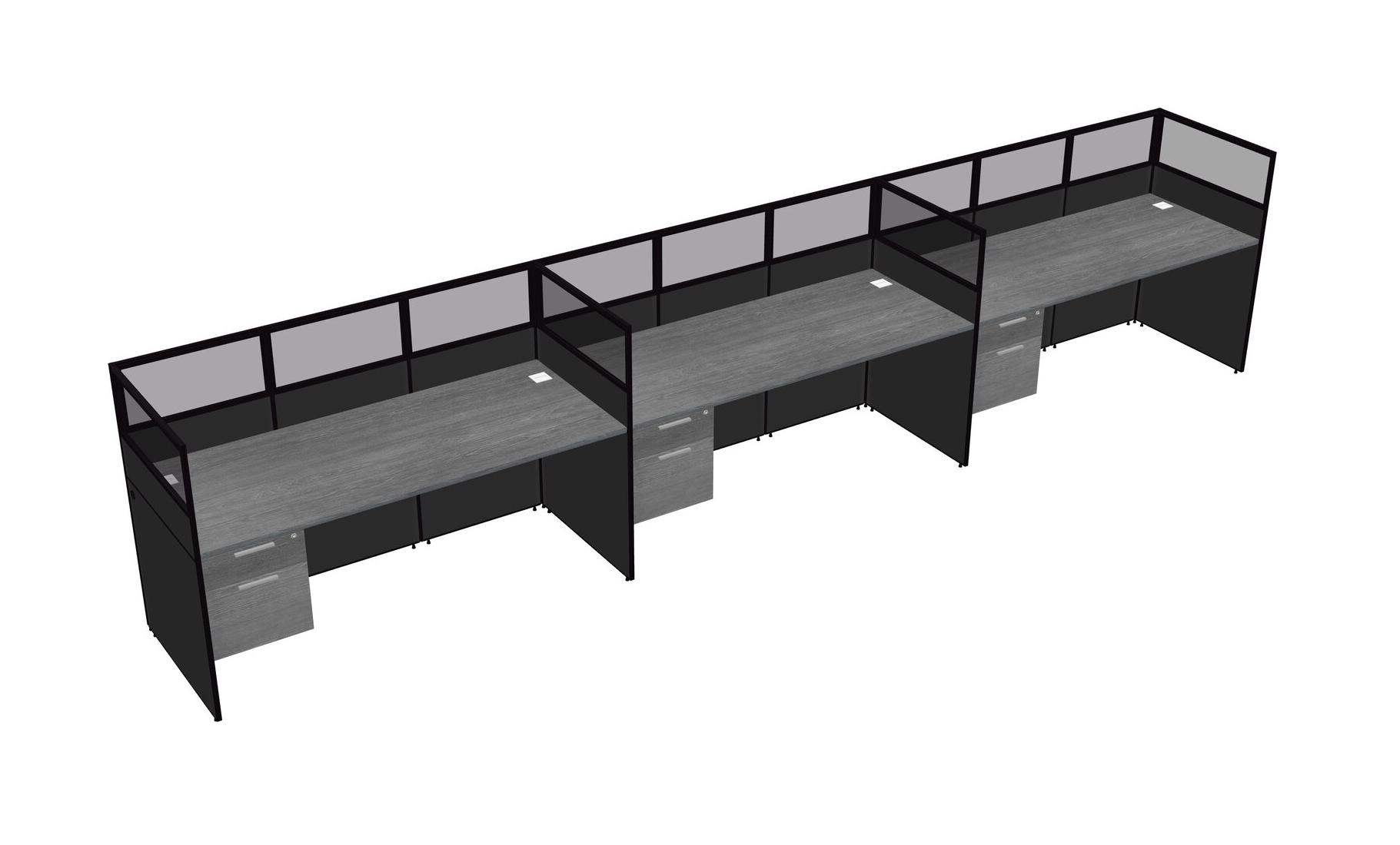 Grey Shared Rectangular Office Cubicle Panel System With Hanging Drawers For 3 Persons