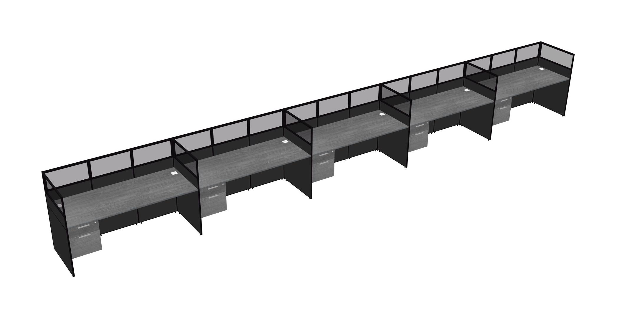 Grey Shared Rectangular Office Cubicle Panel System With Hanging Drawers For 5 Persons