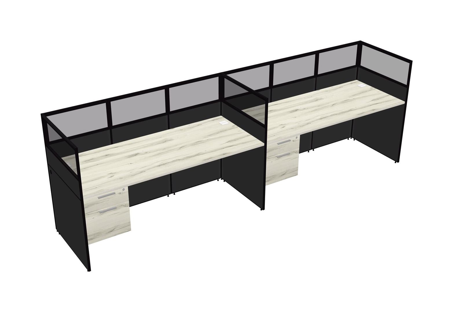Heinne Holz Shared Rectangular Office Cubicle Panel System With Hanging Drawers For 2 Persons