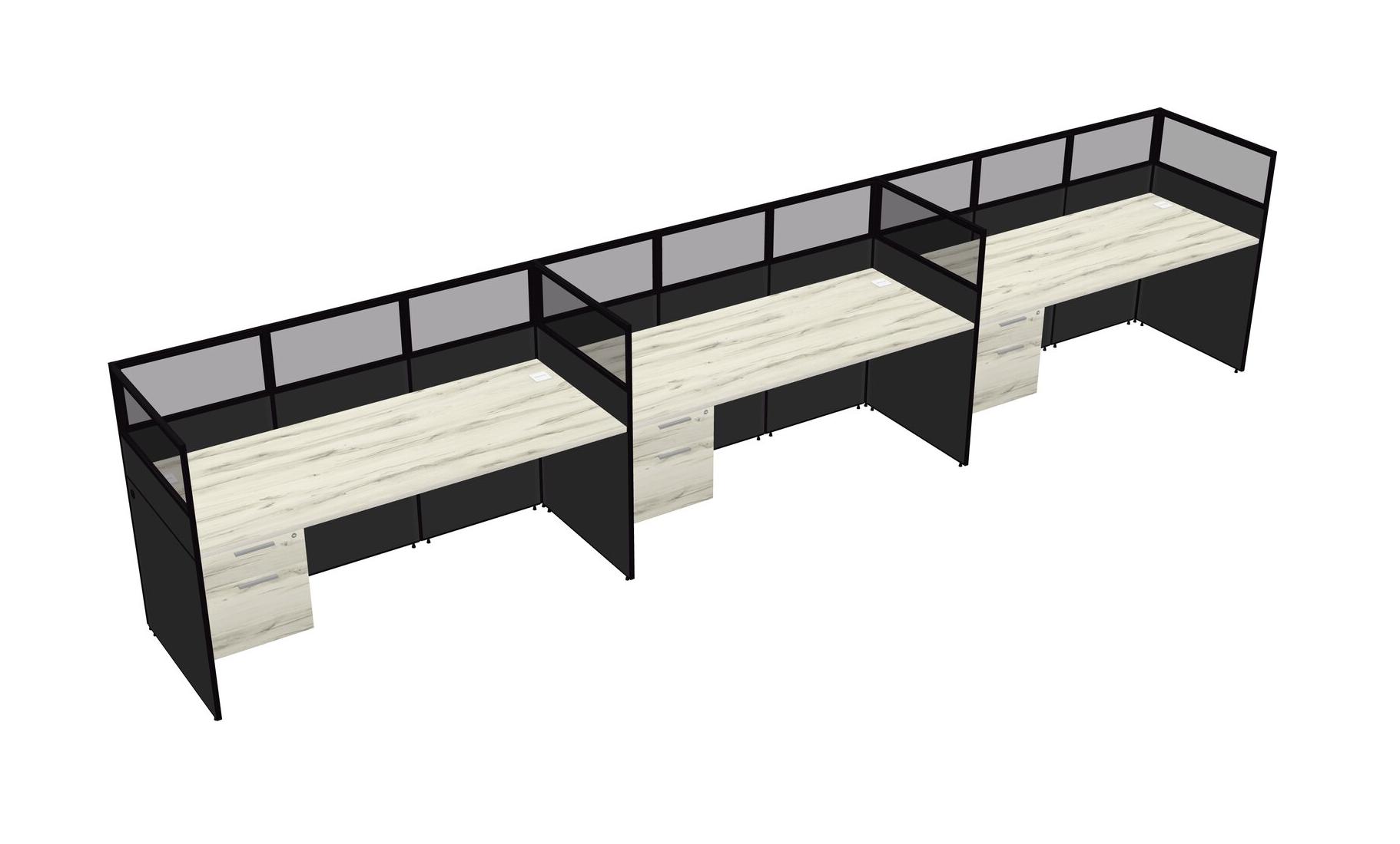 Heinne Holz Shared Rectangular Office Cubicle Panel System With Hanging Drawers For 3 Persons