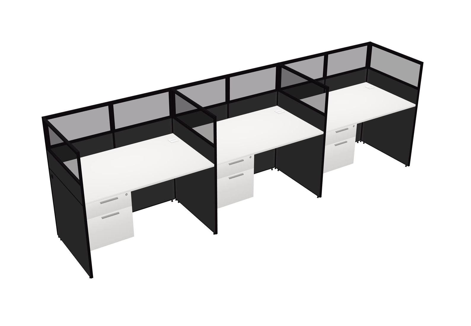 White Shared Rectangular Office Cubicle Panel System With Hanging Drawers For 3 Persons