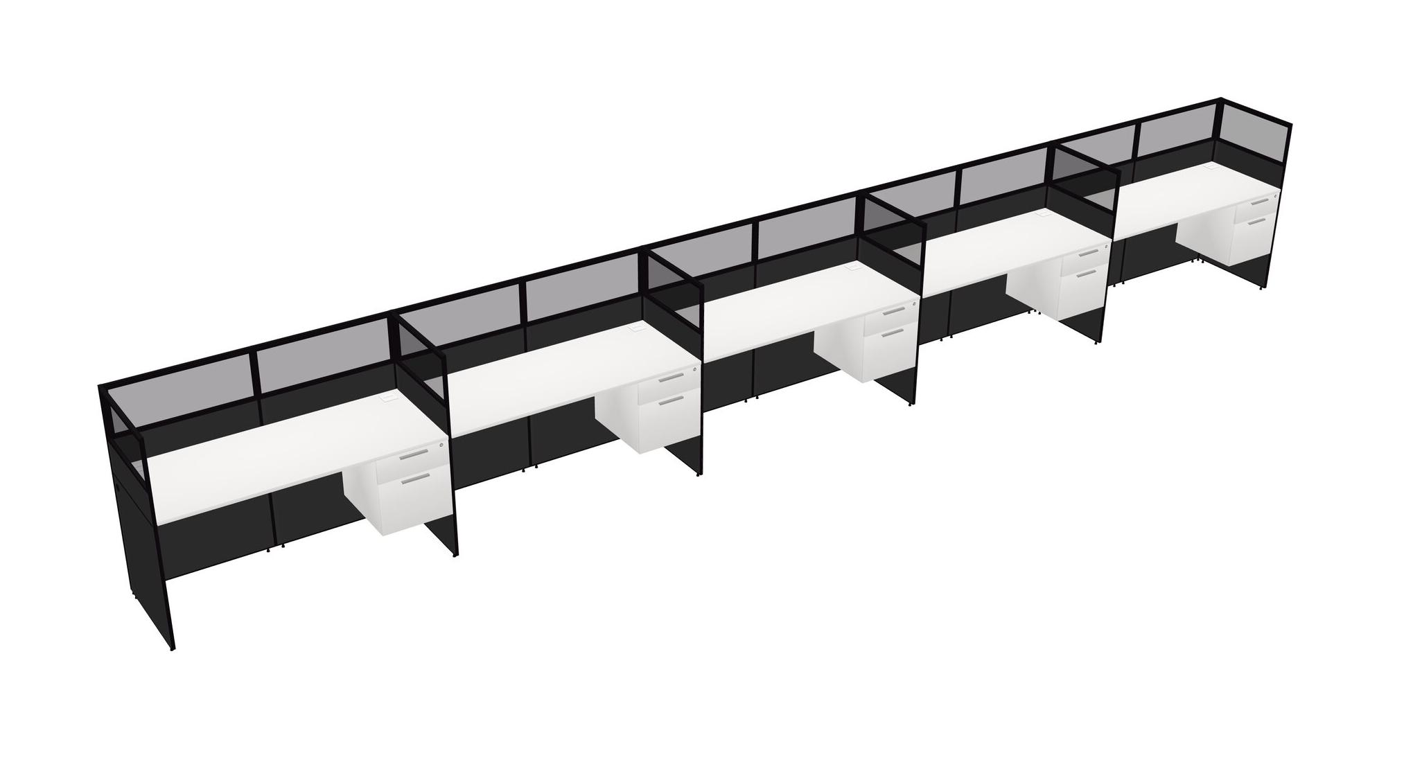 White Shared Rectangular Office Cubicle Panel System With Hanging Drawers For 5 Persons