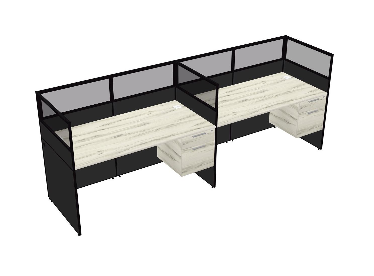 Heinne Holz Shared Rectangular Office Cubicle Panel System With Hanging Drawers For 2 Persons