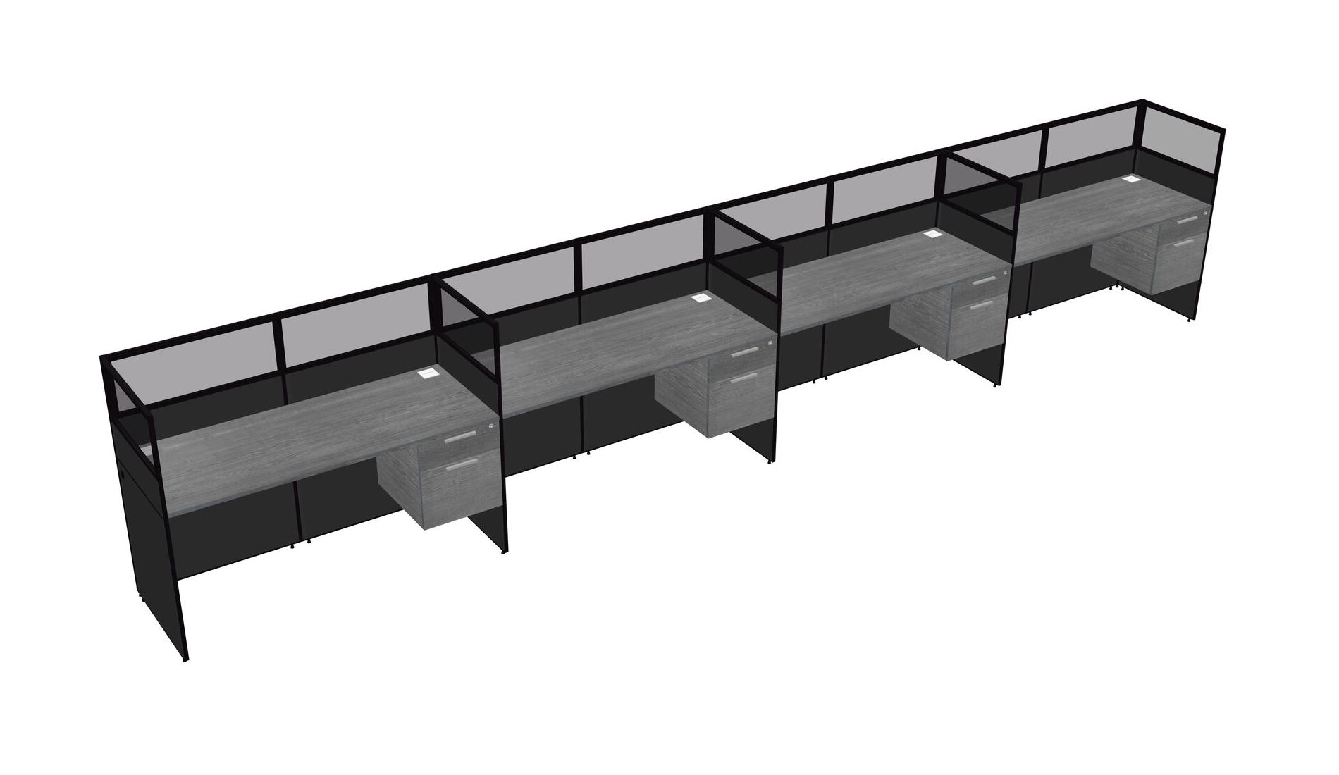 Grey Shared Rectangular Office Cubicle Panel System With Hanging Drawers For 4 Persons