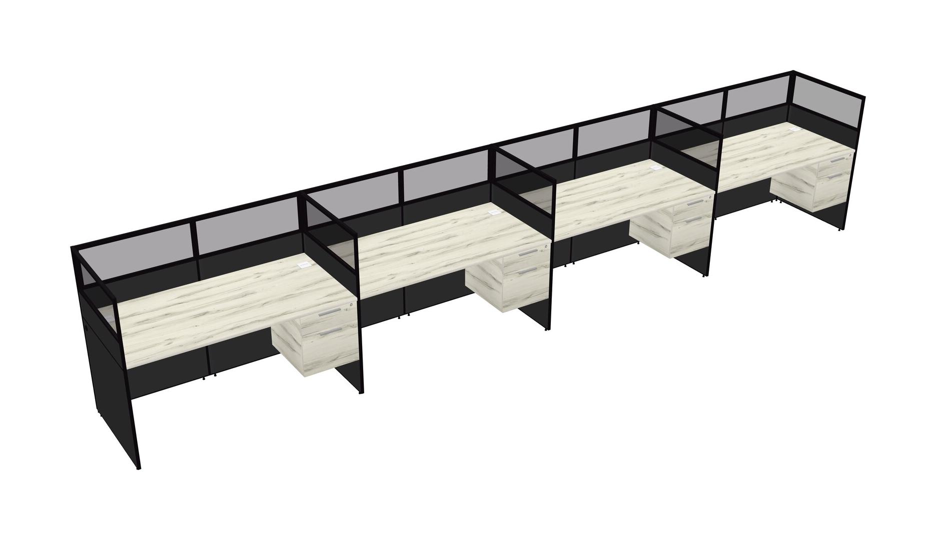 Heinne Holz Shared Rectangular Office Cubicle Panel System With Hanging Drawers For 4 Persons