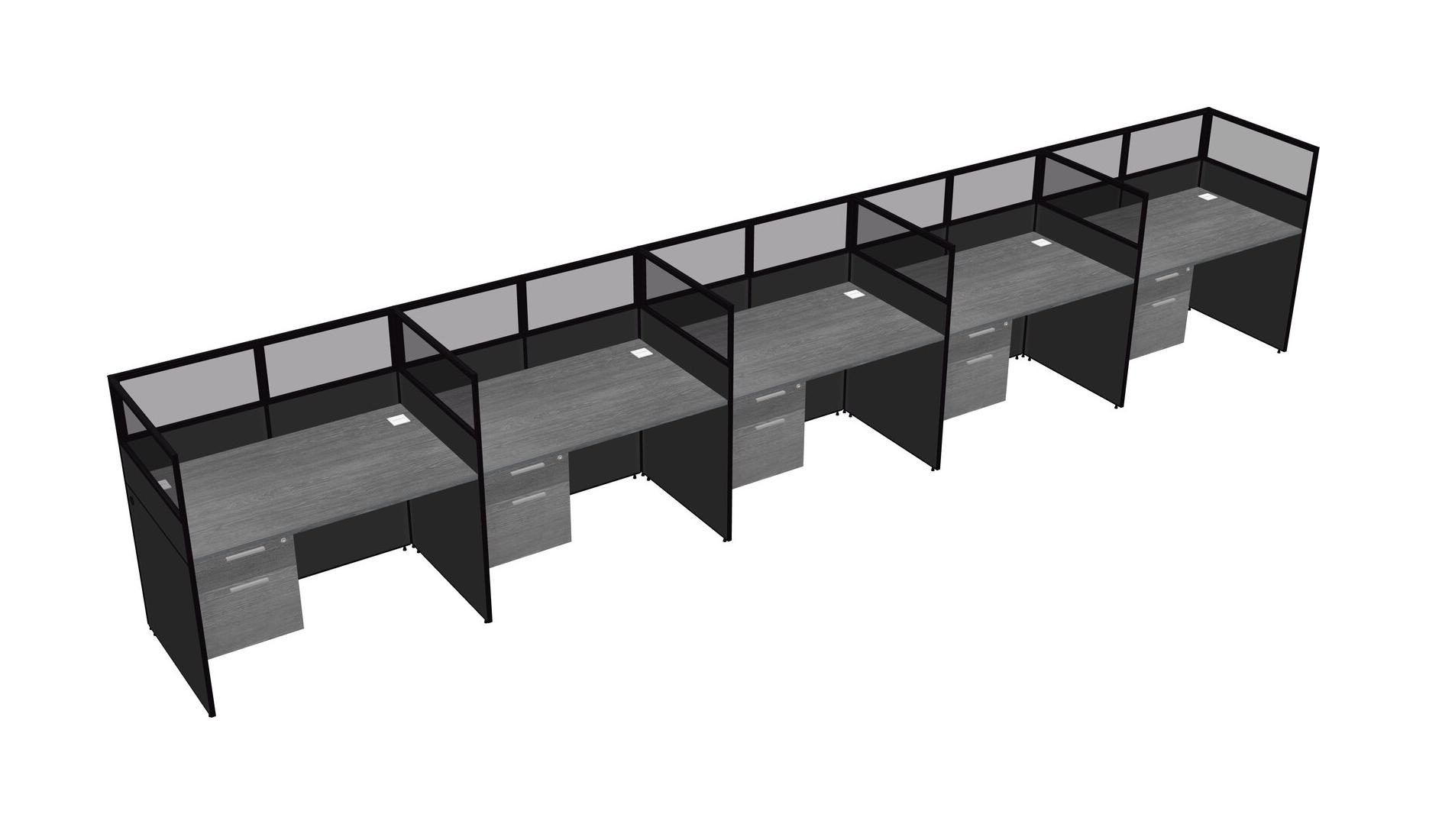 Grey Shared Rectangular Office Cubicle Panel System With Hanging Drawers For 5 Persons