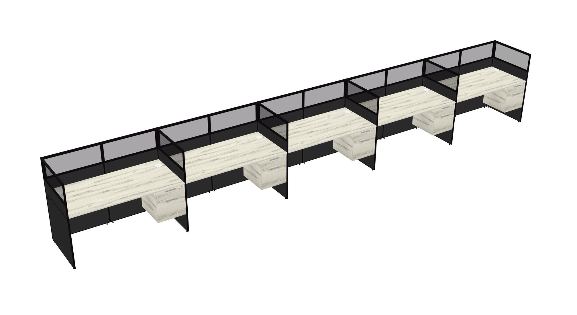 Heinne Holz Shared Rectangular Office Cubicle Panel System With Hanging Drawers For 5 Persons