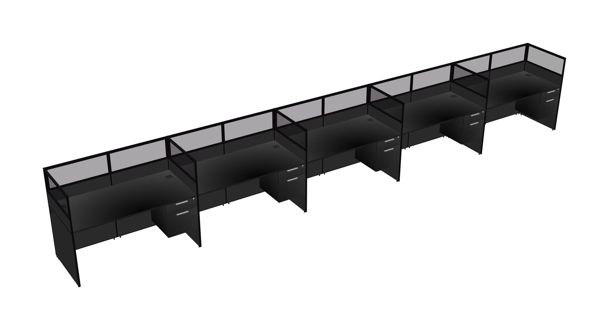 Black Shared Rectangular Office Cubicle Panel System With Hanging Drawers For 5 Persons
