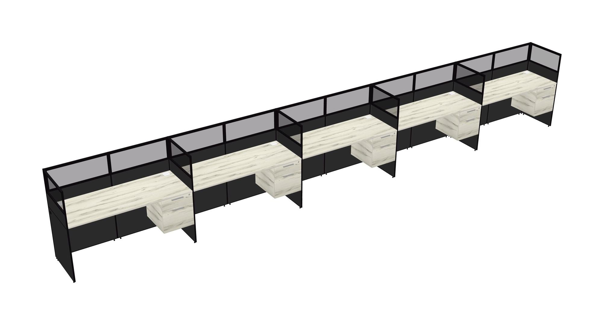 Heinne Holz Shared Rectangular Office Cubicle Panel System With Hanging Drawers For 5 Persons