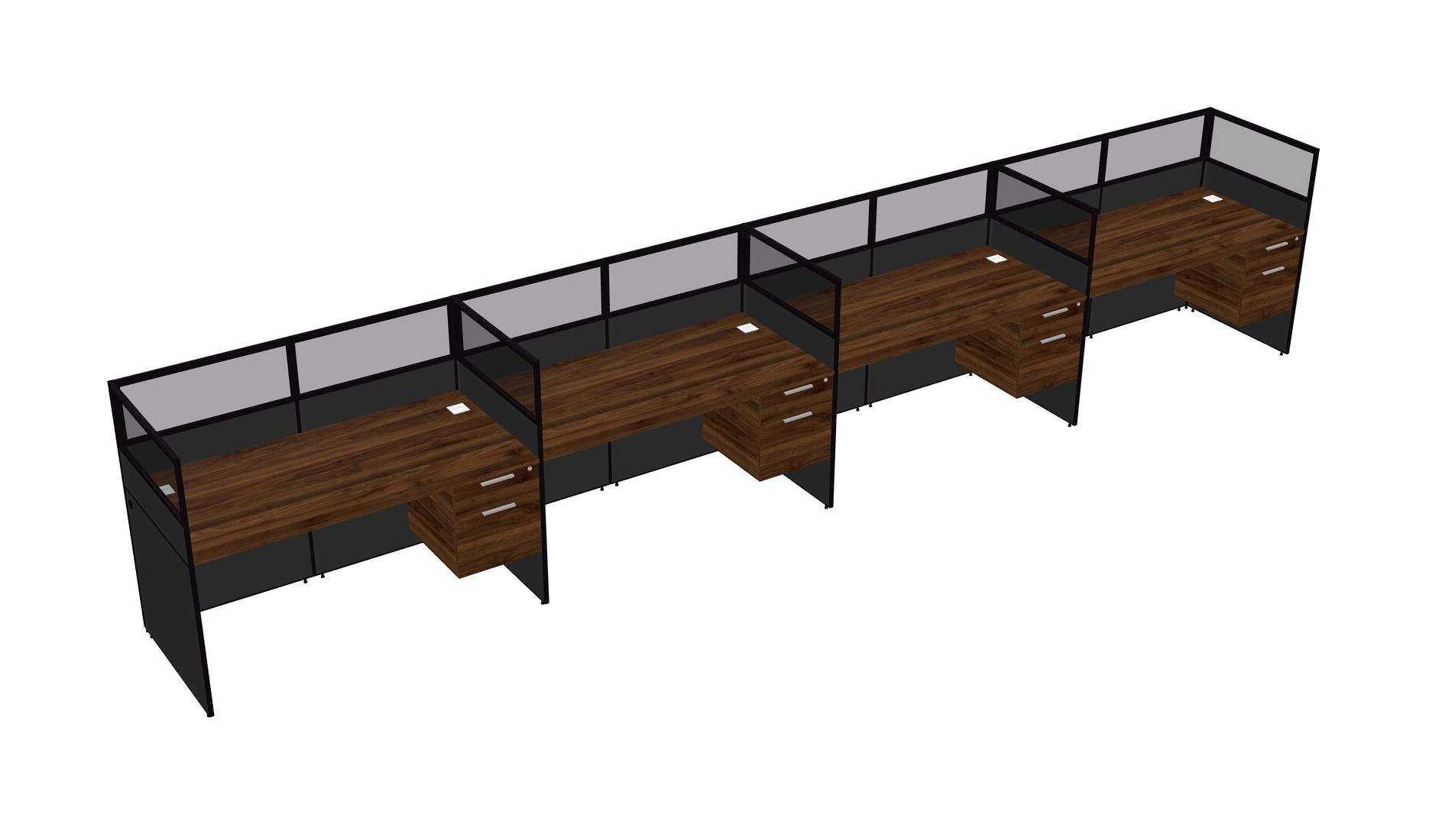 Columbia Walnut Shared Rectangular Office Cubicle Panel System With Hanging Drawers For 4 Persons