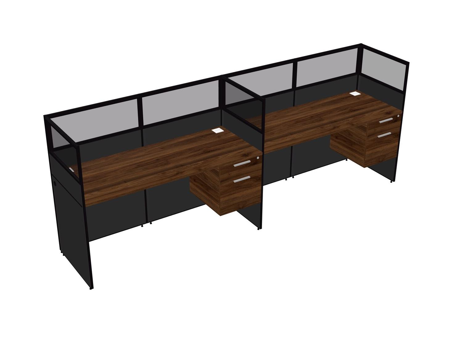 Columbia Walnut Shared Rectangular Office Cubicle Panel System With Hanging Drawers For 2 Persons