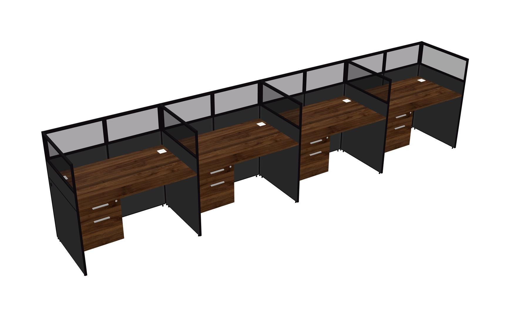 Columbia Walnut Shared Rectangular Office Cubicle Panel System With Hanging Drawers For 4 Persons