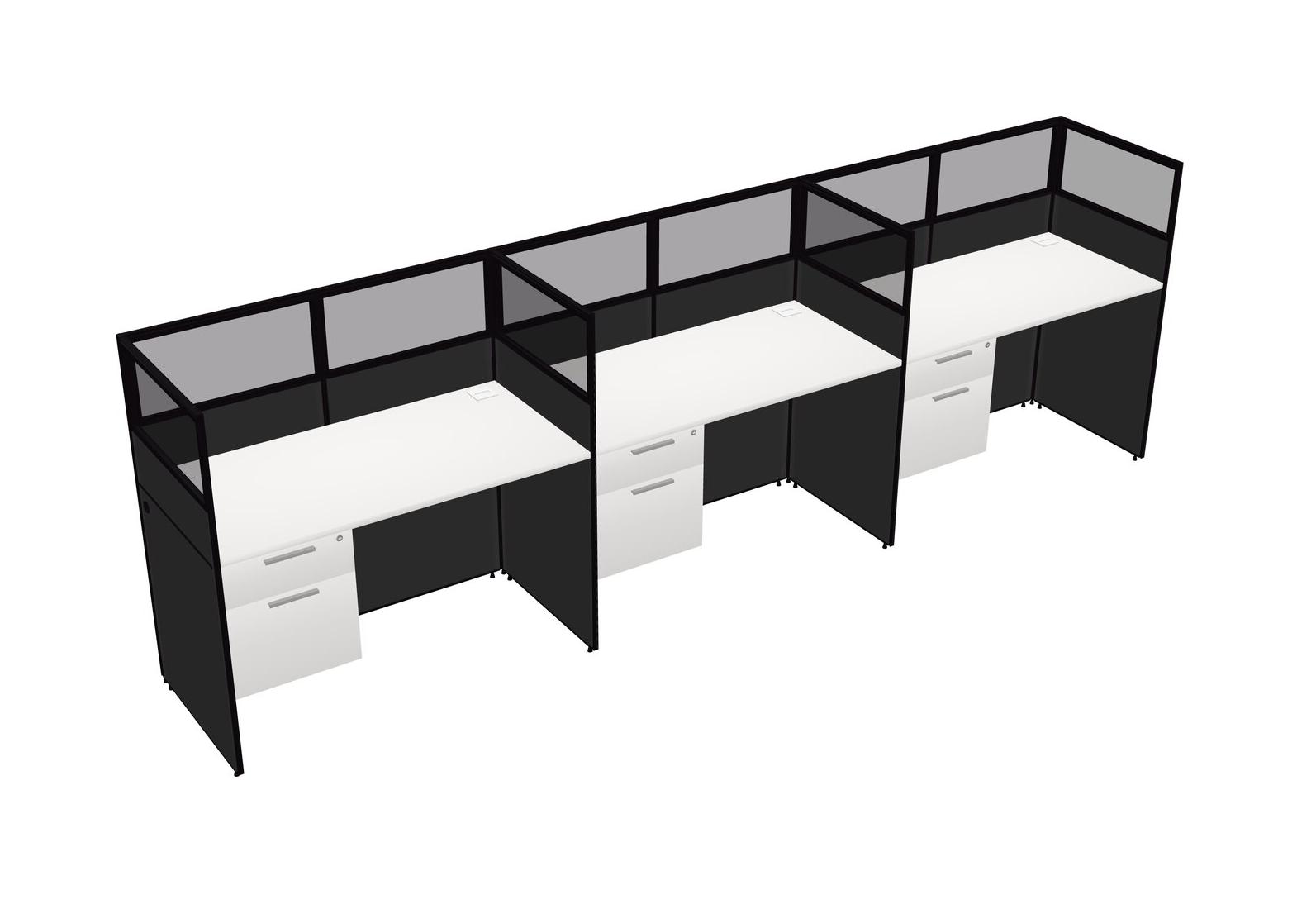White Shared Rectangular Office Cubicle Panel System With Hanging Drawers For 3 Persons