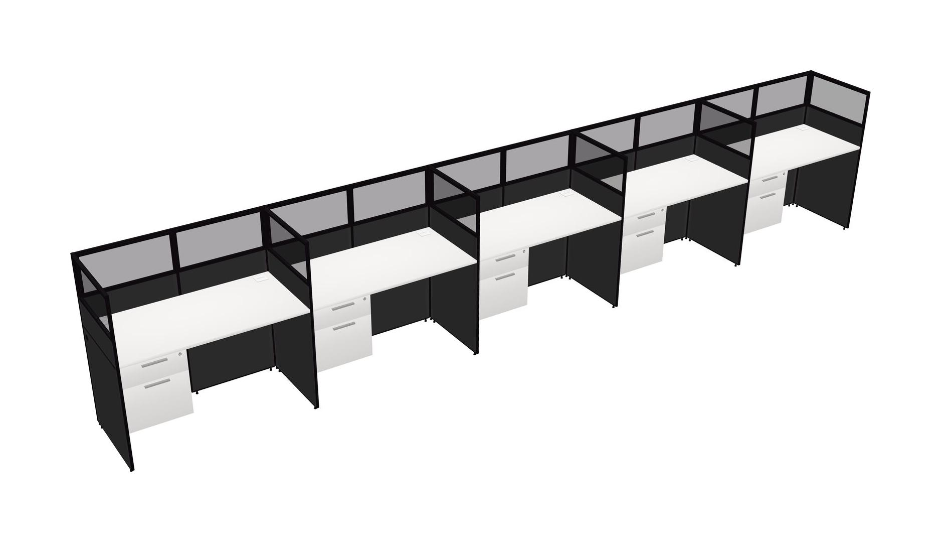 White Shared Rectangular Office Cubicle Panel System With Hanging Drawers For 5 Persons