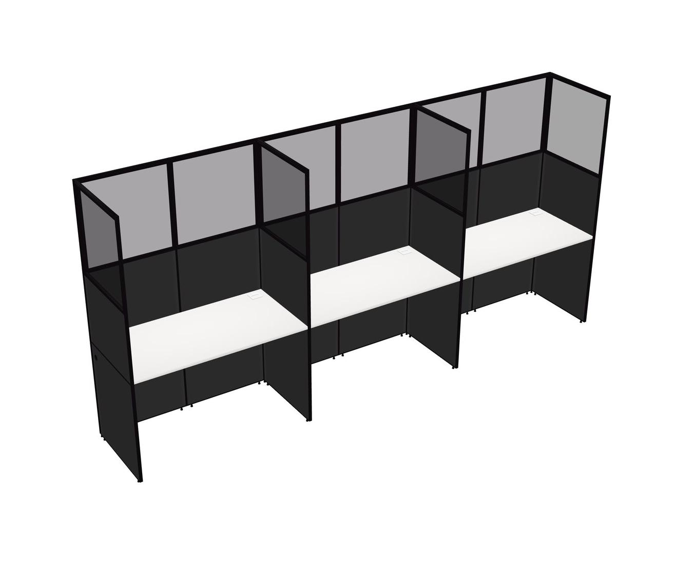 White Shared Rectangular Office Cubicle Panel System For 3 Persons