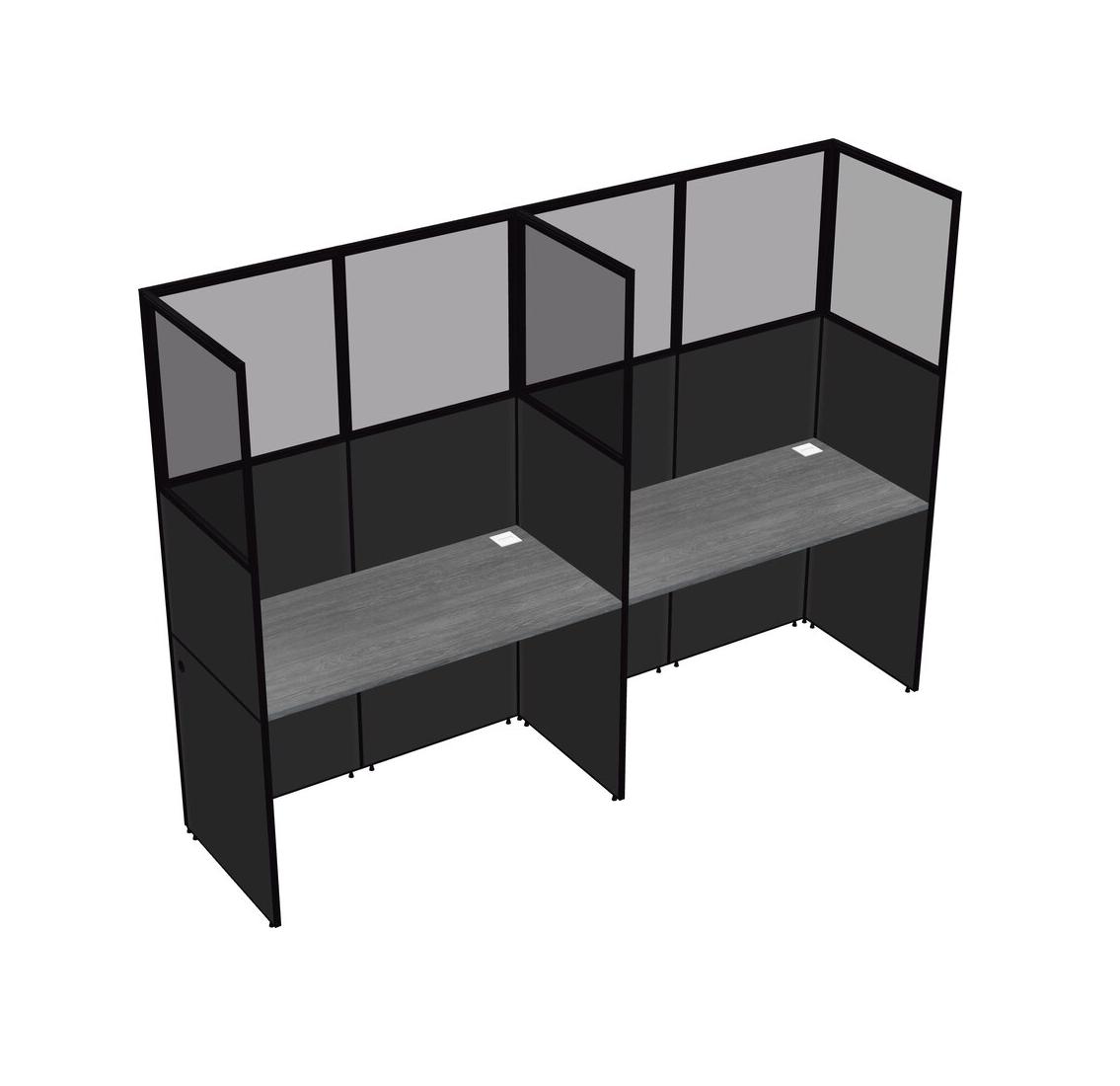 Grey Shared Rectangular Office Cubicle Panel System For 2 Persons