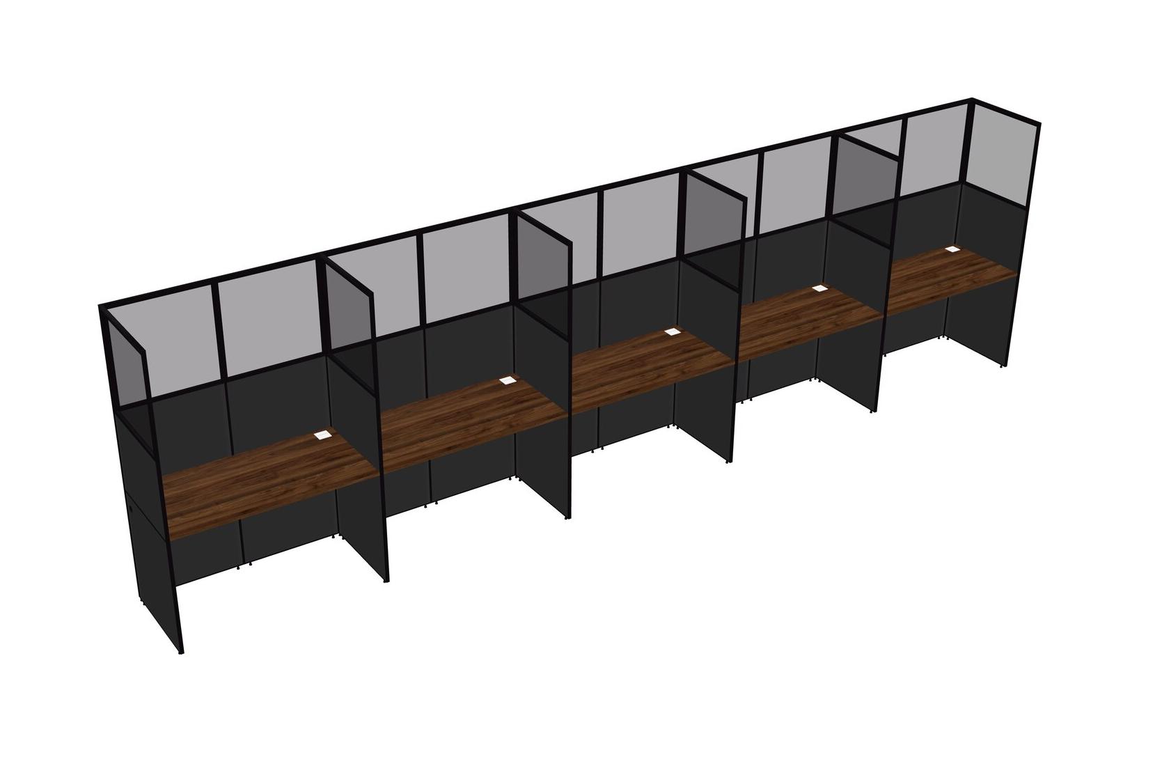 Columbia Walnut Shared Rectangular Office Cubicle Panel System For 5 Persons