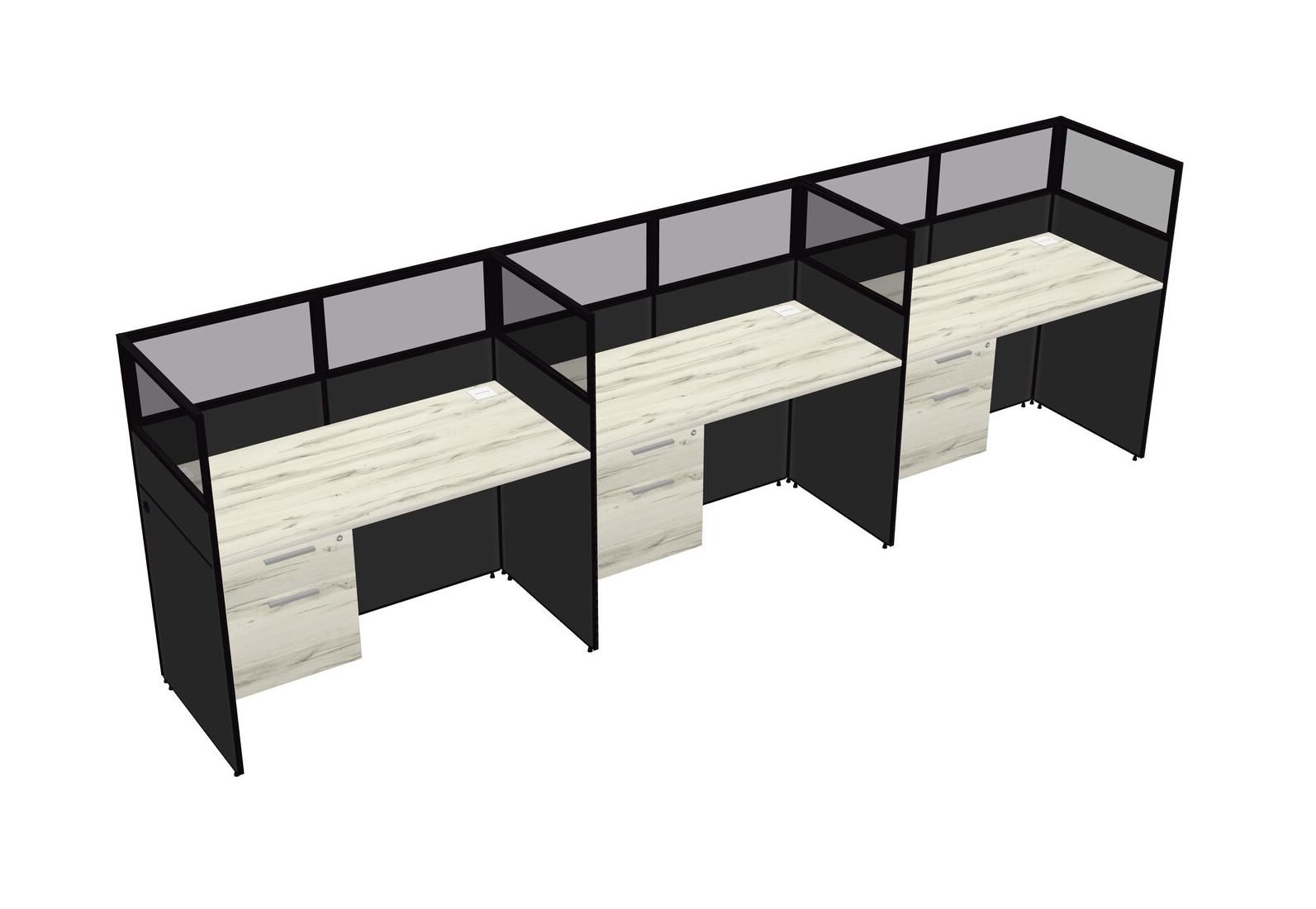 Heinne Holz Shared Rectangular Office Cubicle Panel System With Hanging Drawers For 3 Persons