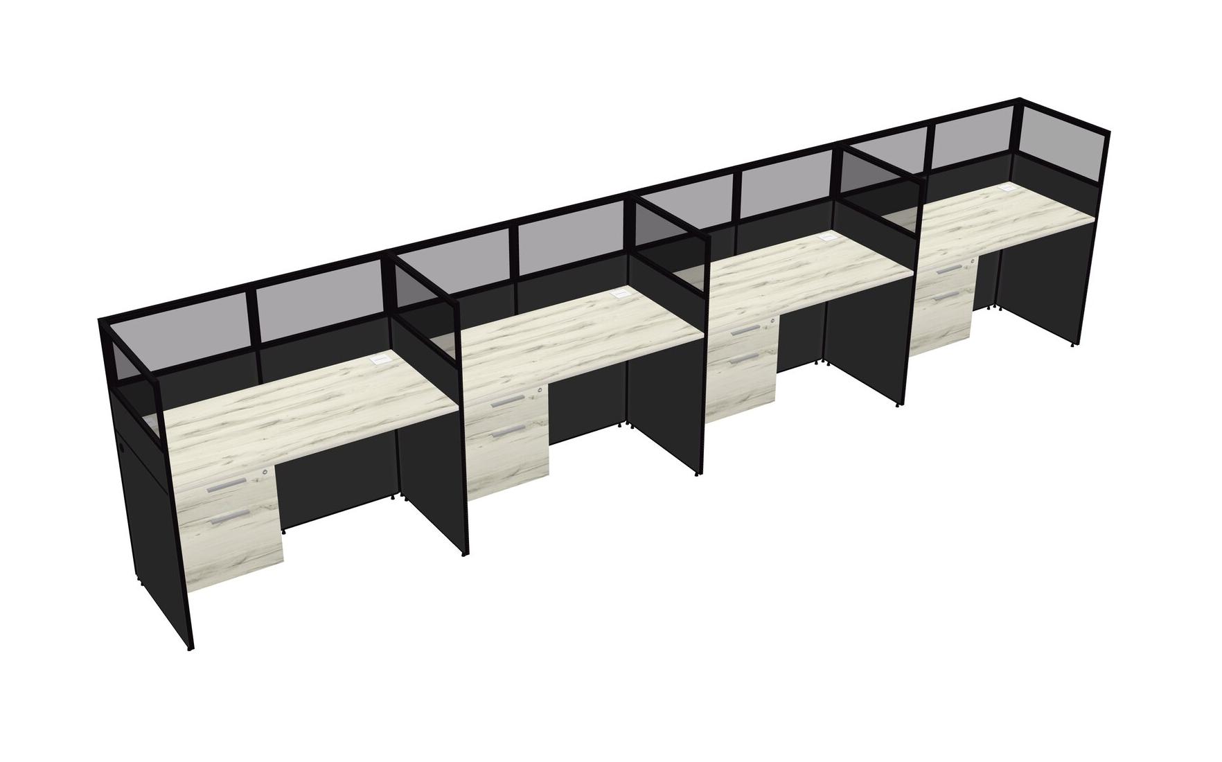 Heinne Holz Shared Rectangular Office Cubicle Panel System With Hanging Drawers For 4 Persons