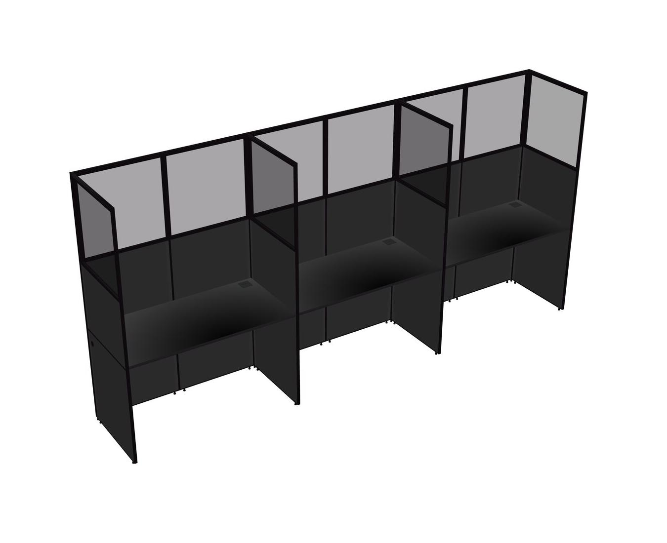 Black Shared Rectangular Office Cubicle Panel System For 3 Persons