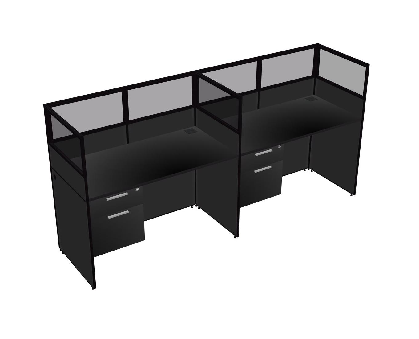 Black Shared Rectangular Office Cubicle Panel System With Hanging Drawers For 2 Persons