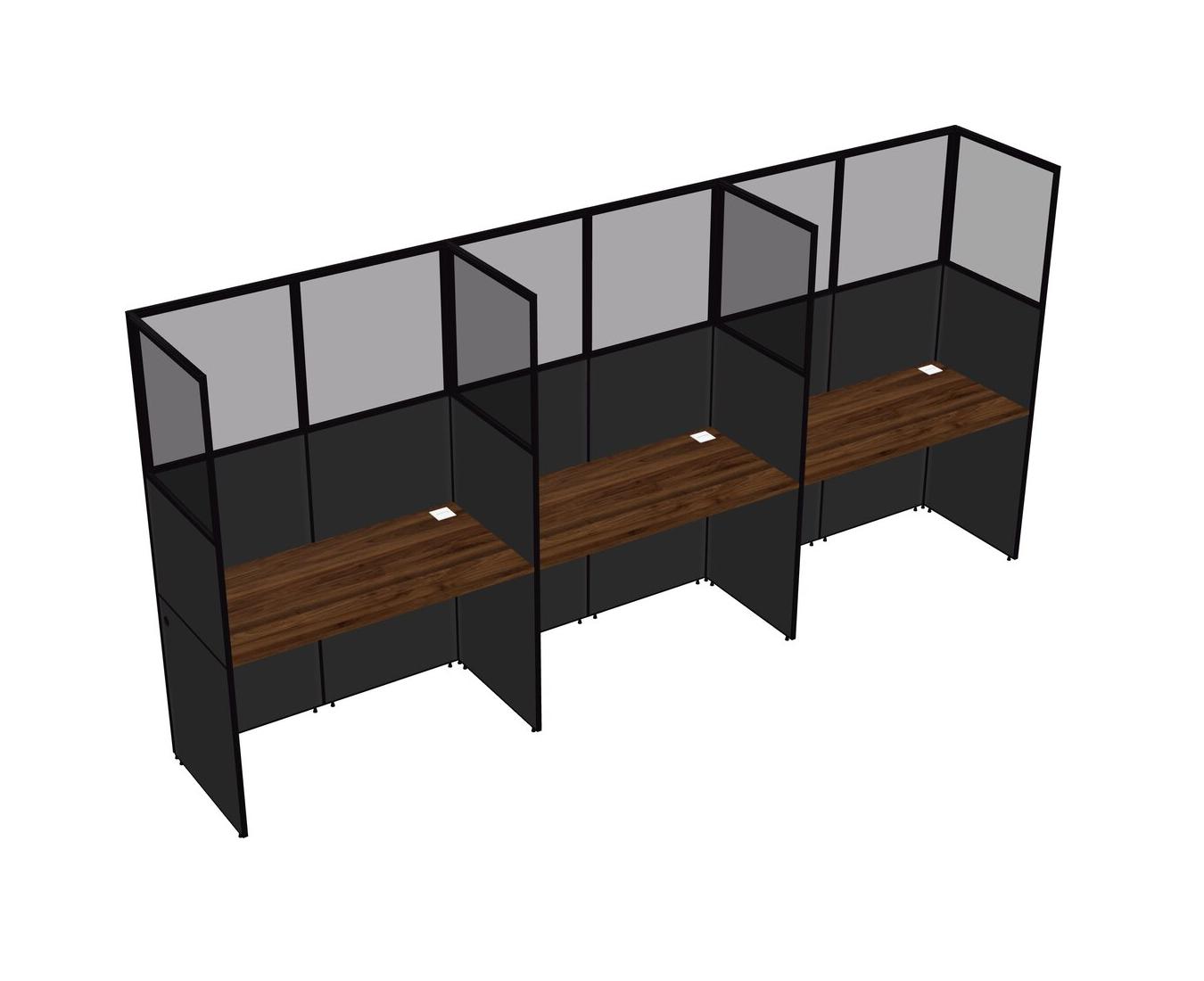 Columbia Walnut Shared Rectangular Office Cubicle Panel System For 3 Persons