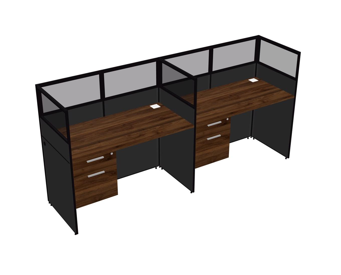 Columbia Walnut Shared Rectangular Office Cubicle Panel System With Hanging Drawers For 2 Persons