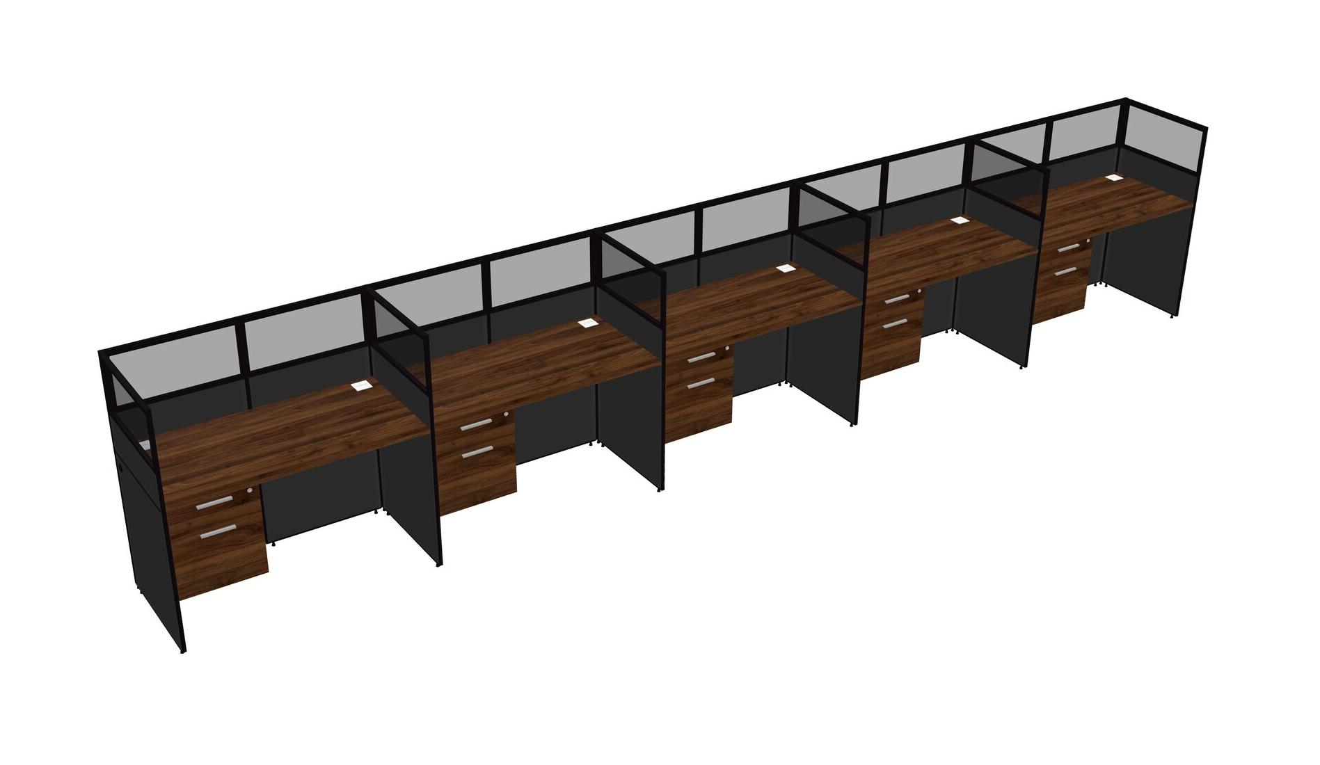 Columbia Walnut Shared Rectangular Office Cubicle Panel System With Hanging Drawers For 5 Persons