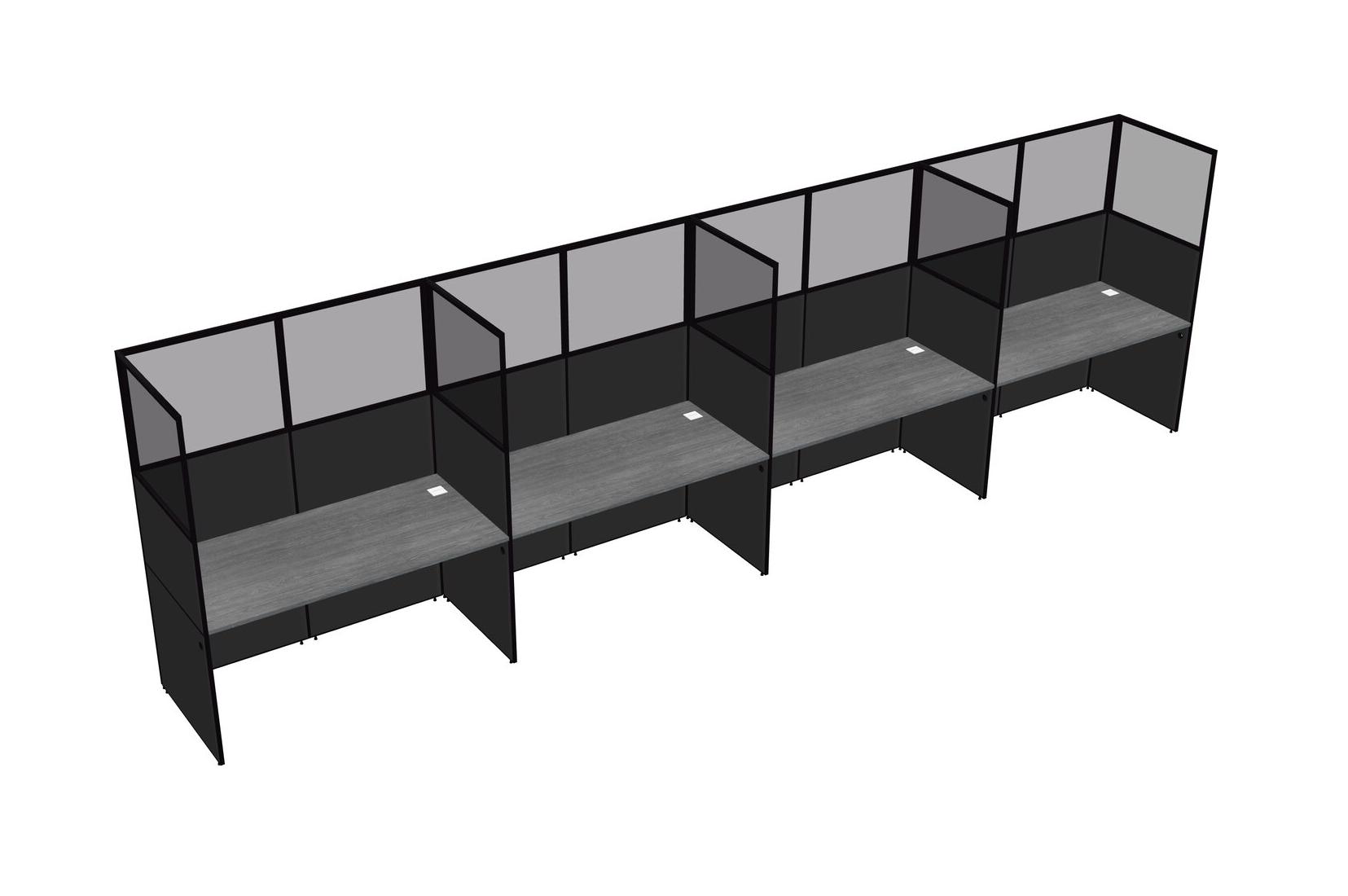 Grey Shared Rectangular Office Cubicle Panel System For 4 Persons