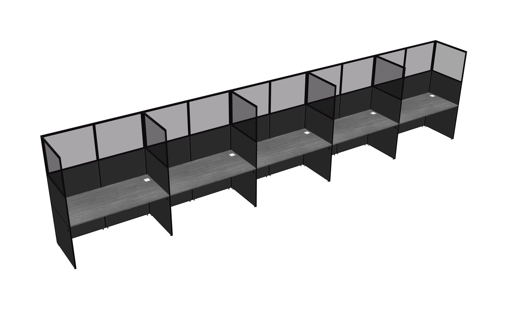 Grey Shared Rectangular Office Cubicle Panel System For 5 Persons