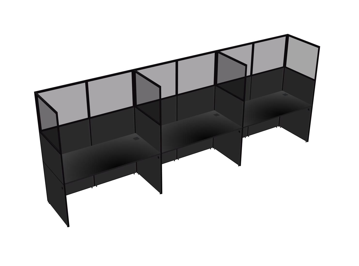 Black Shared Rectangular Office Cubicle Panel System For 3 Persons