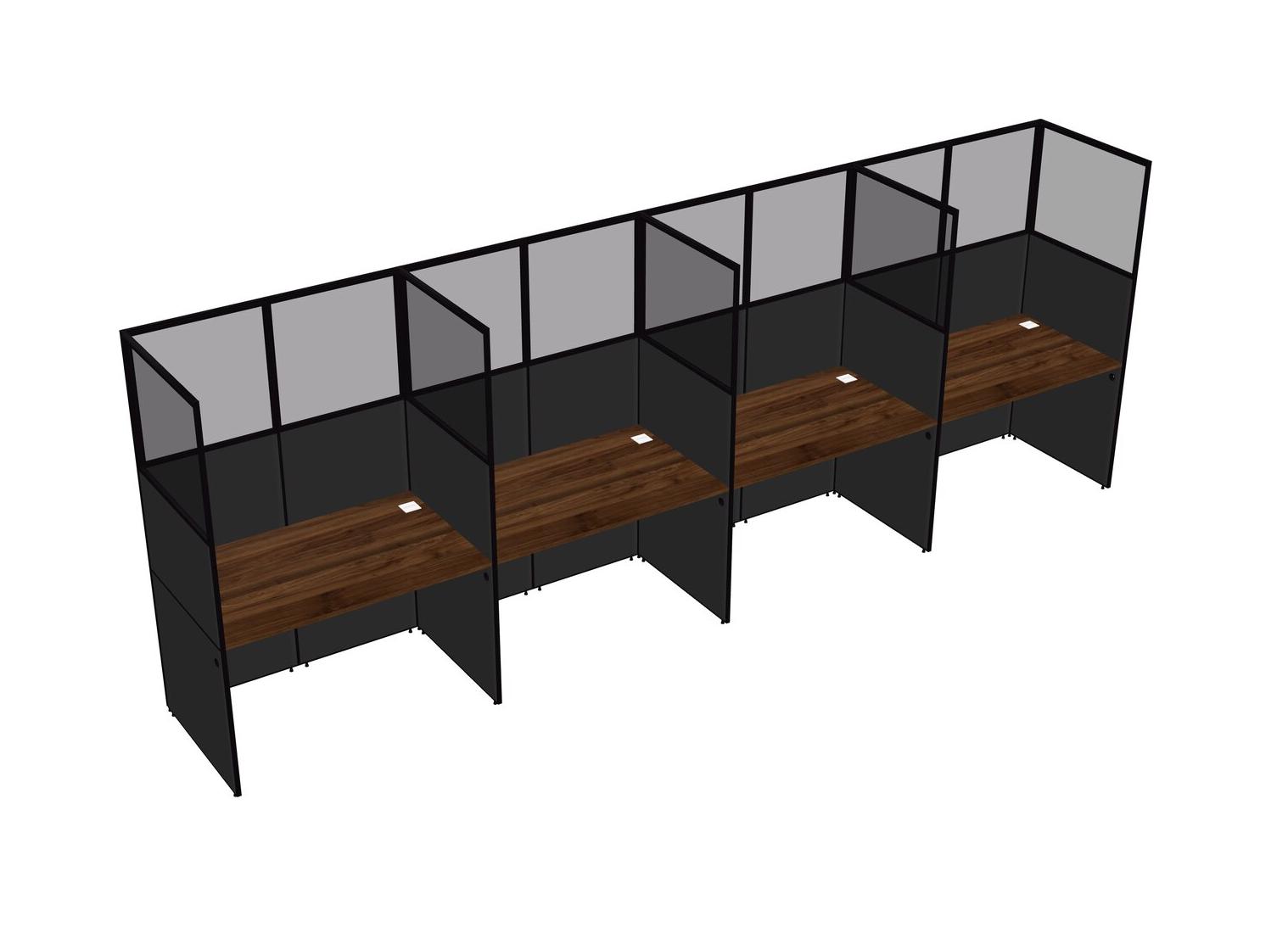 Columbia Walnut Shared Rectangular Office Cubicle Panel System For 4 Persons