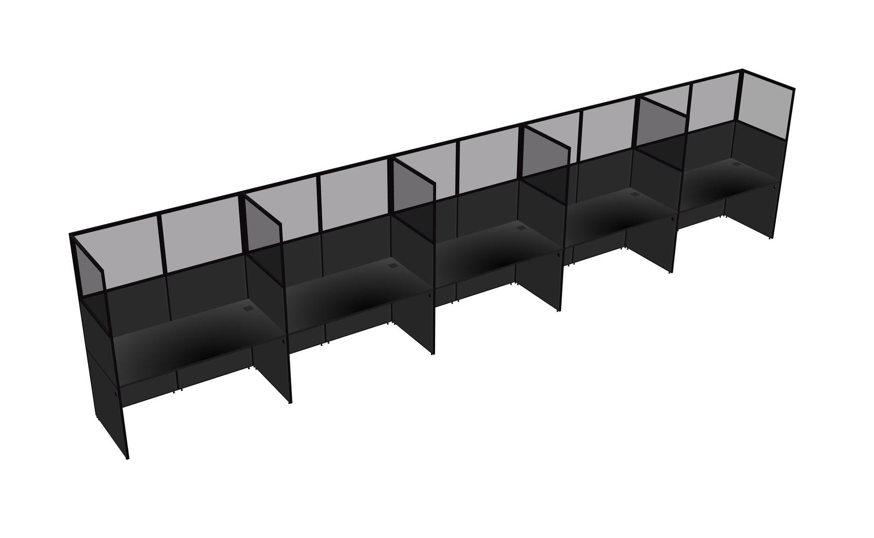 Black Shared Rectangular Office Cubicle Panel System For 5 Persons