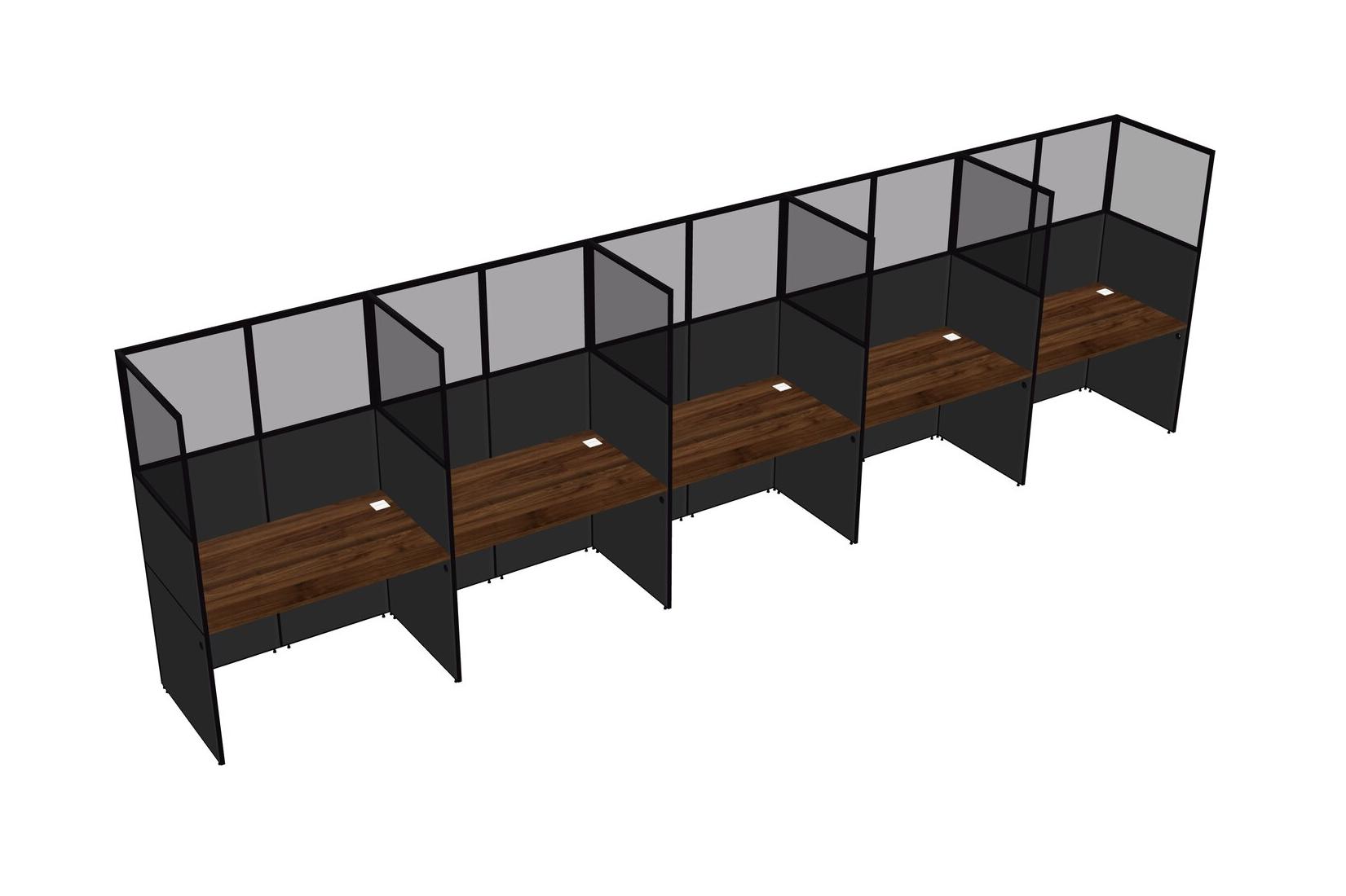 Columbia Walnut Shared Rectangular Office Cubicle Panel System For 5 Persons