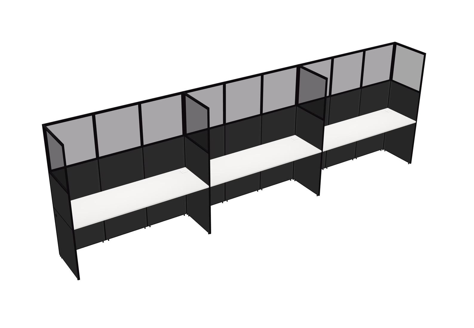 White Shared Rectangular Office Cubicle Panel System For 3 Persons