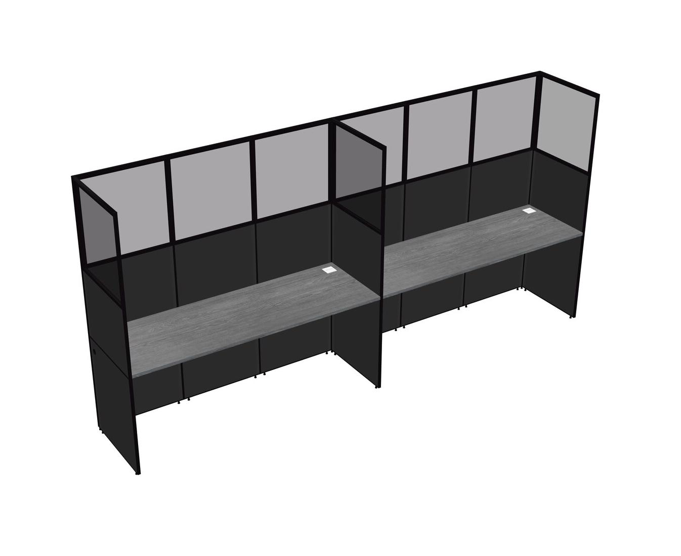 Grey Shared Rectangular Office Cubicle Panel System For 2 Persons