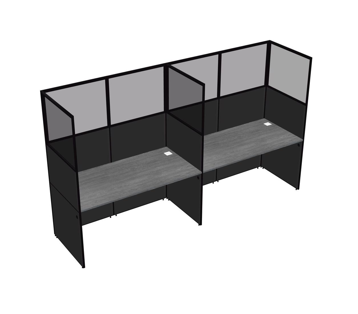 Grey Shared Rectangular Office Cubicle Panel System For 2 Persons