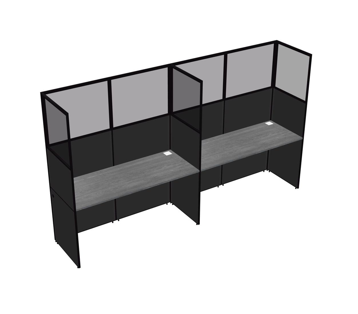 Grey Shared Rectangular Office Cubicle Panel System For 2 Persons