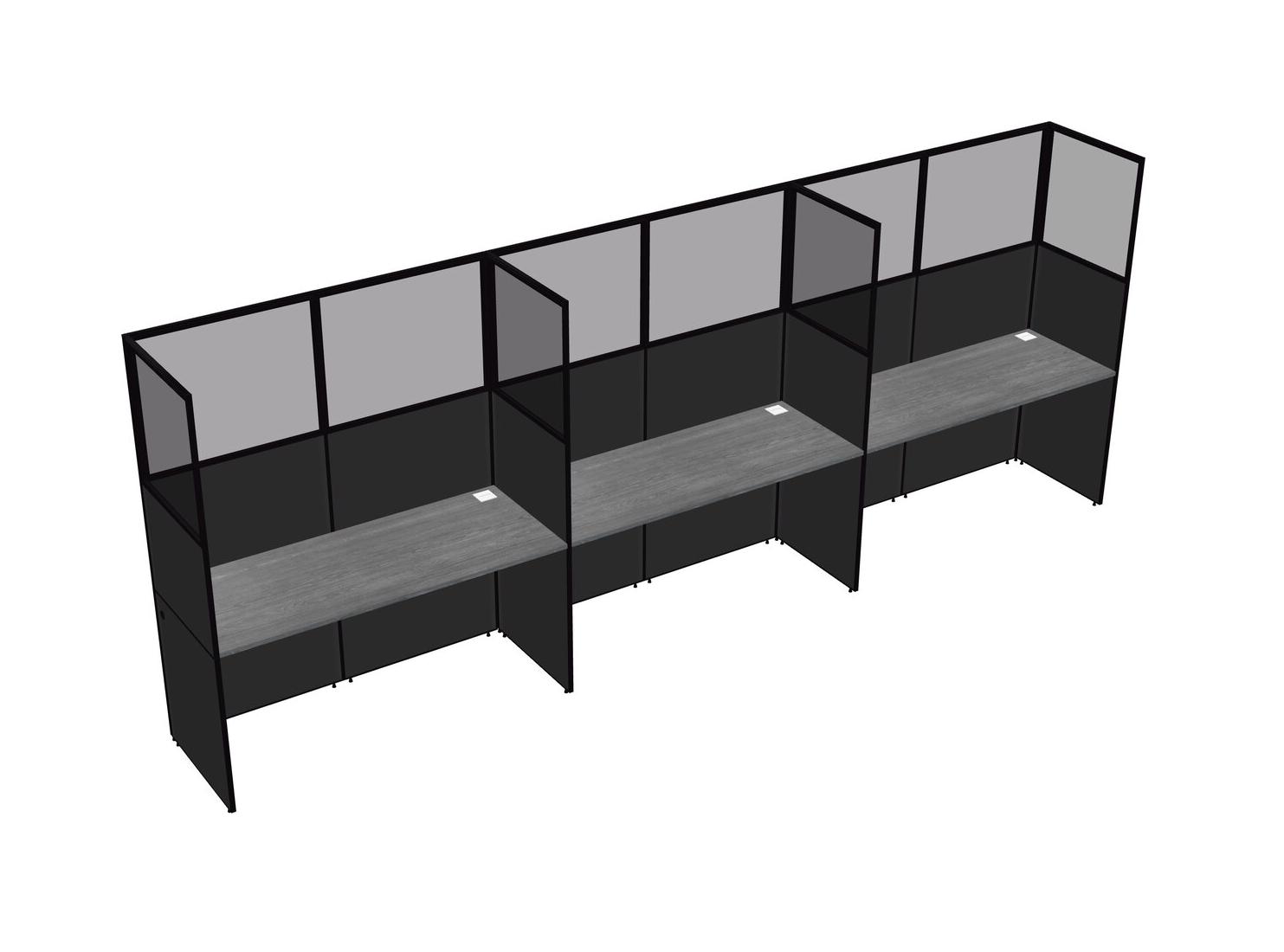 Grey Shared Rectangular Office Cubicle Panel System For 3 Persons