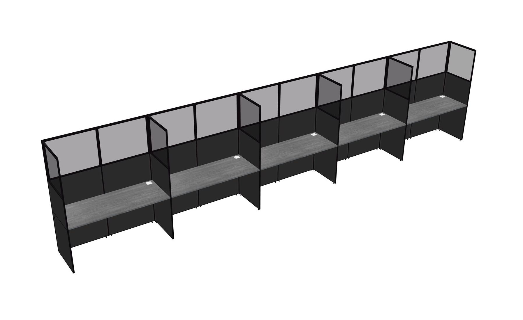 Grey Shared Rectangular Office Cubicle Panel System For 5 Persons