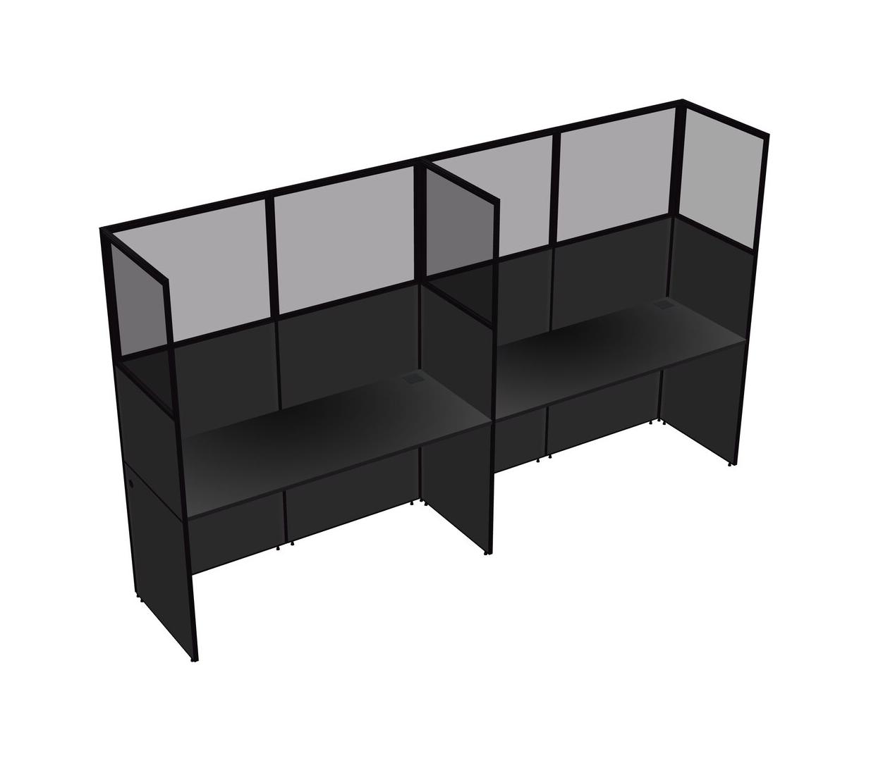 Black Shared Rectangular Office Cubicle Panel System For 2 Persons