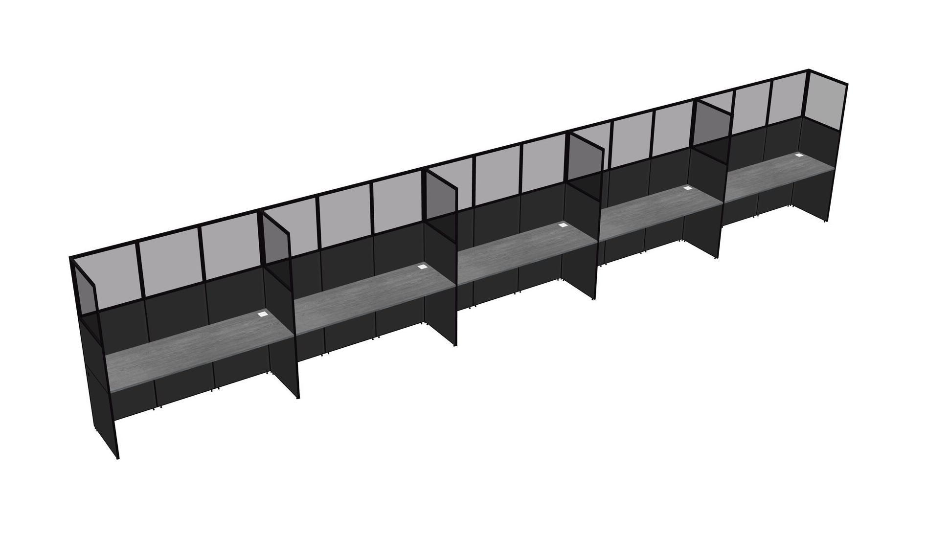 Grey Shared Rectangular Office Cubicle Panel System For 5 Persons